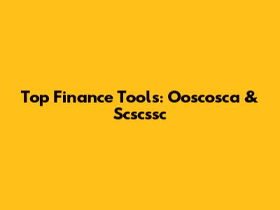 Top Finance Tools: Ooscosca & Scscssc