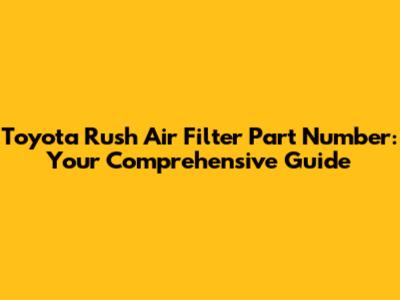Toyota Rush Air Filter: Find The Right Part Number