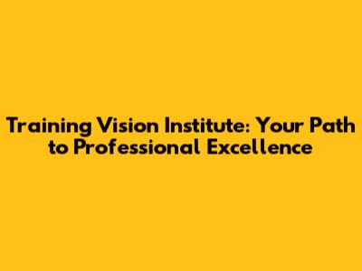 Training Vision Institute: Your Path To Professional Excellence
