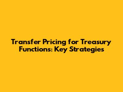Transfer Pricing For Treasury Functions: Key Strategies