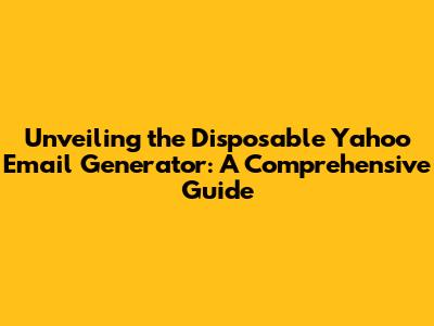 Unveiling The Disposable Yahoo Email Generator: A Comprehensive Guide